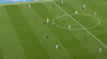 從下圖可以看到,當(dāng)曼城在邊路獲得機(jī)會后,埃弗頓后衛(wèi)是高速回撤想要保護(hù)禁區(qū)后點(diǎn)。這個(gè)思路是因?yàn)橐郧暗墓m德,一定是撲球門后點(diǎn)等隊(duì)友把球傳過來。