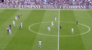 隨后在3人包圍圈下,及時(shí)把球傳了出去。這也是哈蘭德一個(gè)關(guān)鍵的進(jìn)步點(diǎn),他不只是能進(jìn)球,同時(shí)在愿意參與防守的基礎(chǔ)上,還能在反擊推進(jìn)時(shí)給隊(duì)友送出一些不錯(cuò)的傳球和起到串聯(lián)進(jìn)攻的作用。
